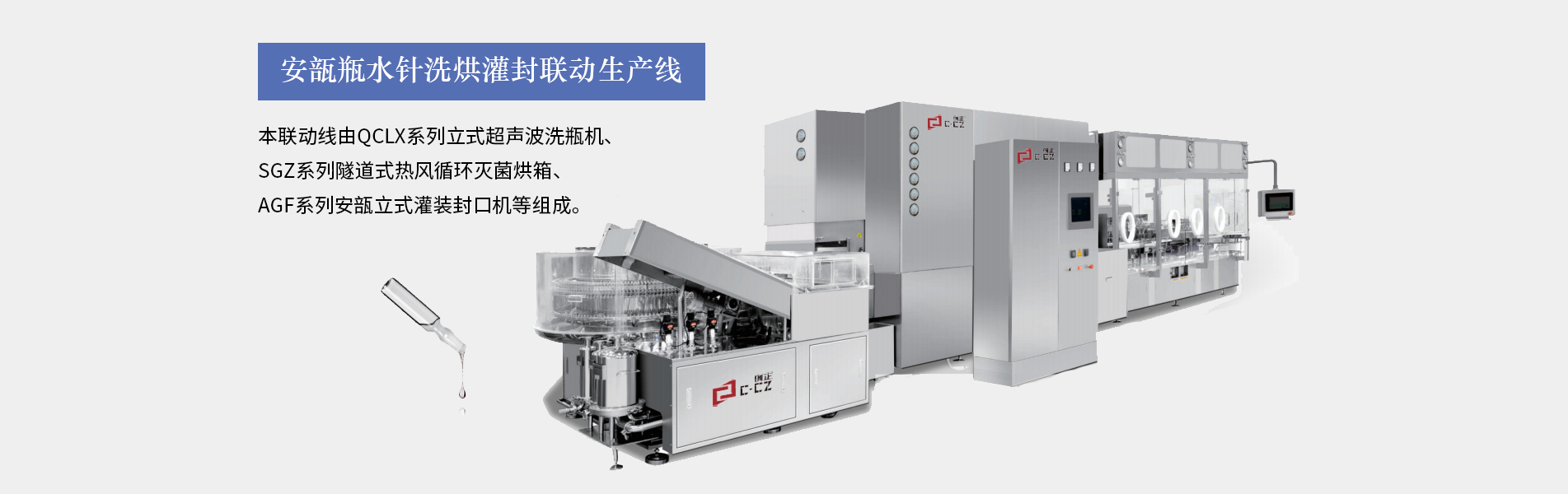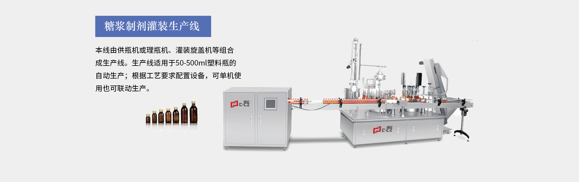 糖漿灌裝生產(chǎn)線(xiàn)適合30ML以上口服液的灌裝生產(chǎn),由供瓶機(jī)、直線(xiàn)式灌裝軋(旋)蓋機(jī)、立式貼標(biāo)機(jī)等設(shè)備組成,可全自動(dòng)完成灌裝、上蓋、旋(軋)蓋、貼標(biāo)等工序。主要用于制藥、食品、化工的的各種液體物料的灌裝聯(lián)動(dòng)生產(chǎn)。本生產(chǎn)線(xiàn)完全符合GMP要求。糖漿灌裝生產(chǎn)線(xiàn)特點(diǎn)裝量特征:無(wú)滴漏、不起泡、不飛濺。運(yùn)行特征:運(yùn)行穩(wěn)定,噪音??;灌裝精確,能耗少,破瓶率低,成品合格率高性能特征:整條生產(chǎn)線(xiàn)可單機(jī)控制和聯(lián)鎖控制。洗瓶...